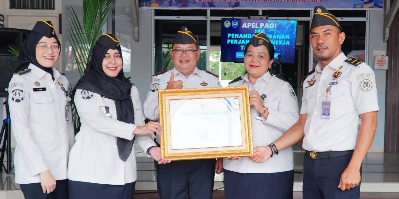 Pekanbaru – Topikutama. Com | Balai Pemasyarakatan (Bapas) Kelas I Pekanbaru melaksanakan kegiatan apel pagi yang dirangkaikan dengan penandatanganan Perjanjian Kinerja Tahun 2026. Kegiatan ini diikuti oleh seluruh pegawai Bapas Kelas I Pekanbaru dan berlangsung di halaman kantor. Apel ini menjadi momentum untuk memperkuat kedisiplinan, kebersamaan, serta kesiapan seluruh jajaran dalam menjalankan tugas pada tahun 2026.(8/01/2026)